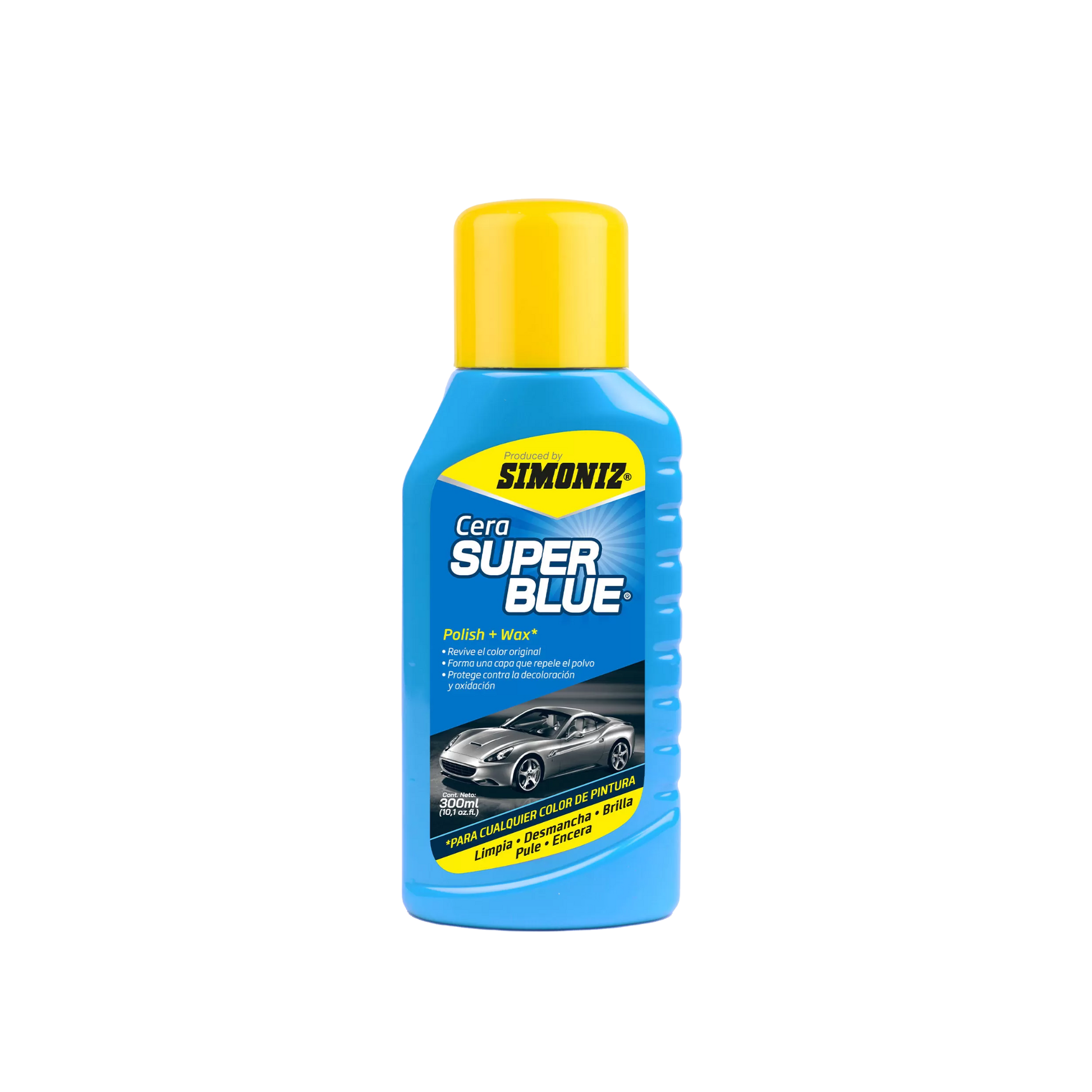La cera SIMONIZ SUPER BLUE revive el color original de la pintura de su auto. Su fórmula contiene agentes que limpian, desmanchan y brillan, protegiendo cualquier tipo y color de pintura. Forma una capa que repele el polvo y el agua, evitando así la decoloración y oxidación prematura. Úselo también en superficies de plástico, fibra de vidrio, pinturas electrostáticas y esmaltado en general. SUPER BLUE es ideal para quitar las manchas de asfalto adheridas a la pintura y eliminar los micro rayones ocasionados por adhesivos o cepillos de lavado.